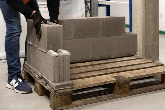 Het innovatie lijmblok-systeem van Coeck dat traditioneel metselwerk vervangt door een sneller, sterker en schoner bouwproces.