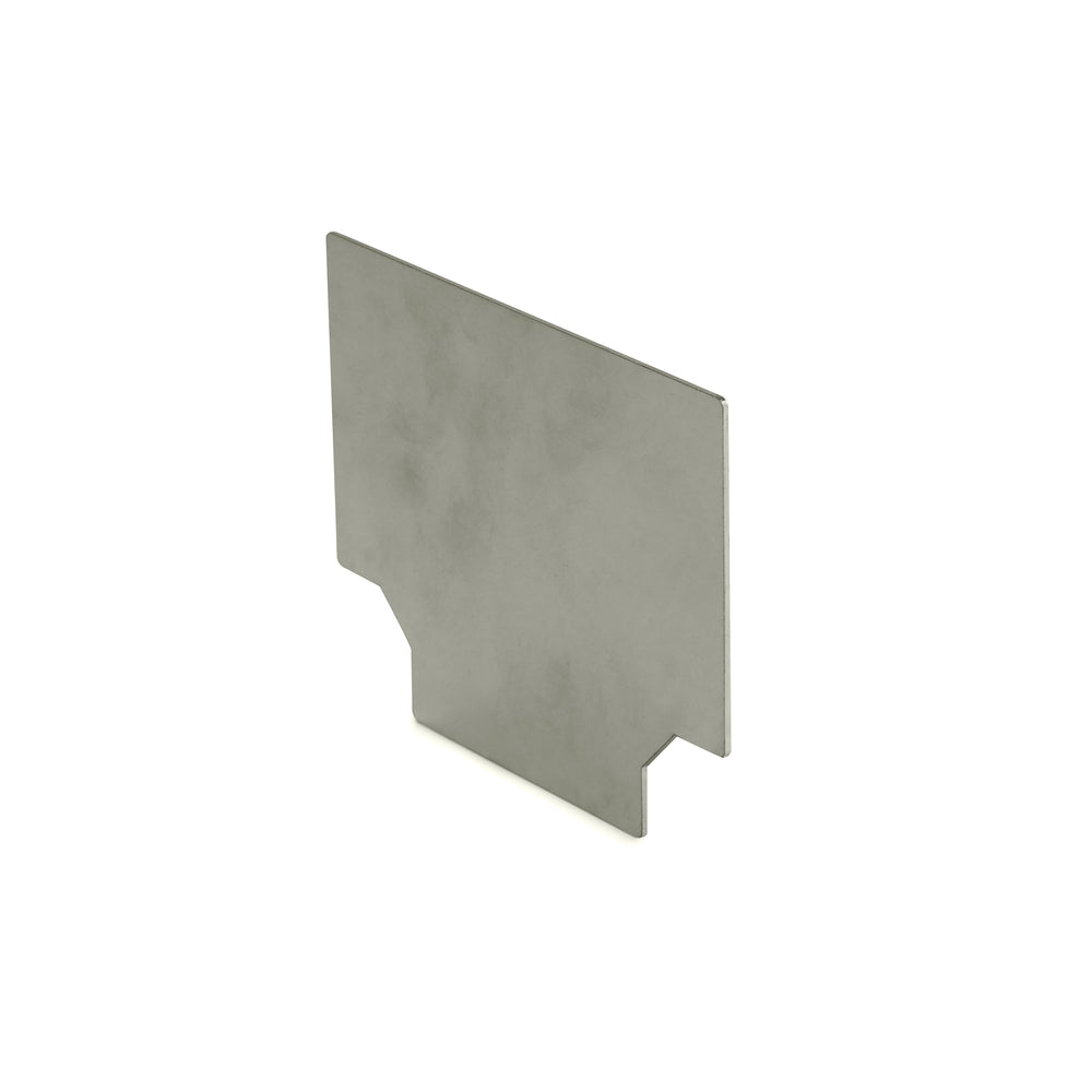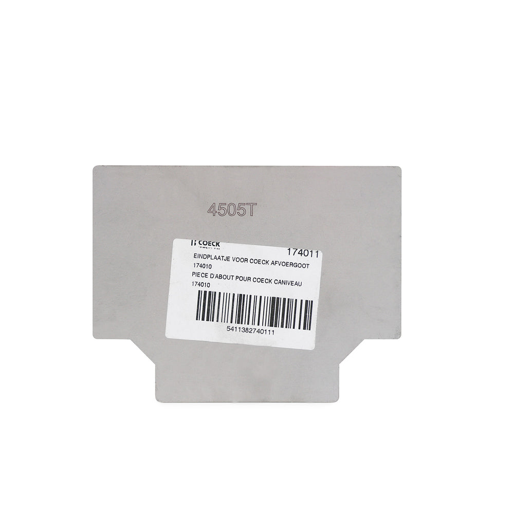Piéce d'about en acier inoxydable pour sceller le début et la fin du caniveau Coeck avec une hauteur de 9 cm. Les plaques d'extrémité sont fixées au caniveau avec de la colle PU.