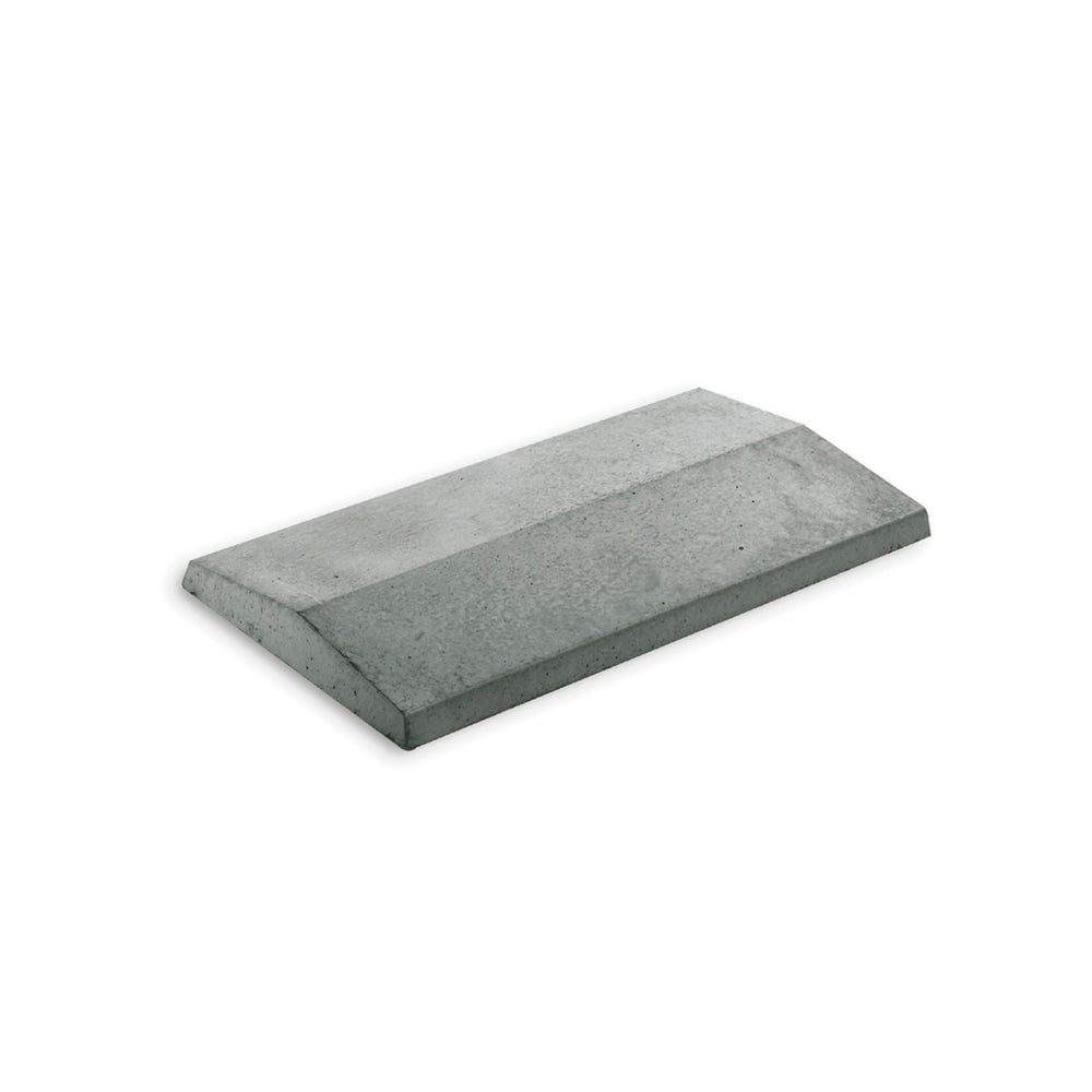 Couvre-mur en béton gris lissé pour l'évacuation des eaux des murs de jardin, des toitures plates, des murs maçonnés, etc. Ce type dispose de 2 évacuations similaires afin que l'eau de pluie puisse s'écouler des deux côtés.