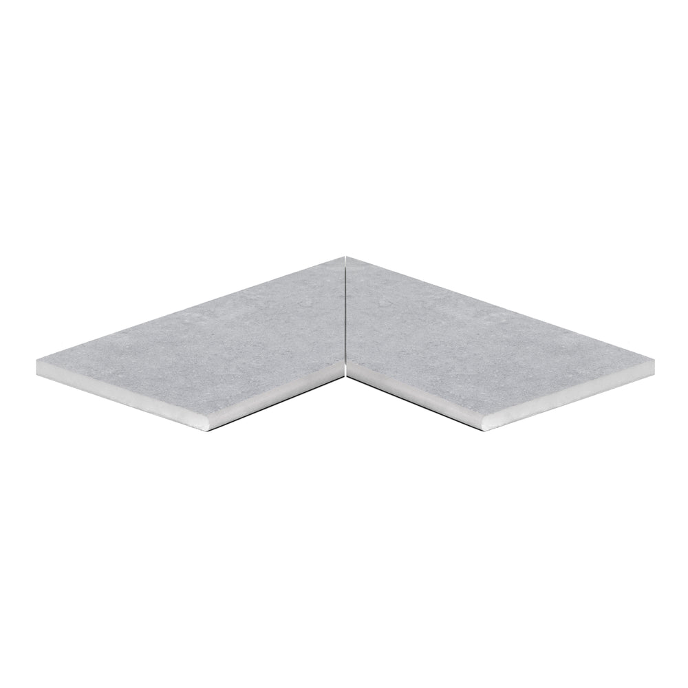 Pièce d'angle intérieur complète pour raccorder les bords biseautés des carreaux. La finition est arrondie à 180°, le carreau est d'abord coupé sur mesure et les bords biseautés sont finis à l'aide d'un polissoir. Les biseaux sont disponibles dans toutes les séries de nos carreaux céramiques d'extérieur de 2 cm.