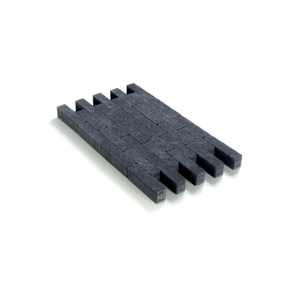 Pavé décoratif de qualité en format fin et long de 20x5x6 cm, avec bords fins tambourinés. Après la production, la surface est traitée avec de fins marteaux.
