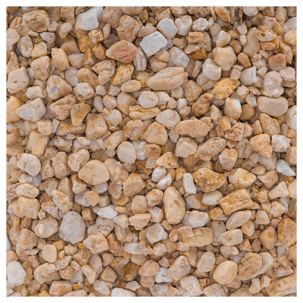Taunus jaune 8-16 mm est un gravier jaune-blanc avec une forme ronde, qui donne une atmosphère chaleureuse et méridionale à votre jardin.