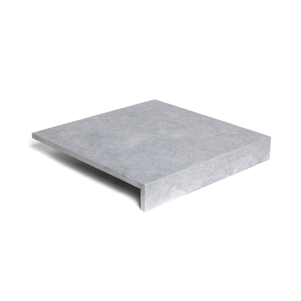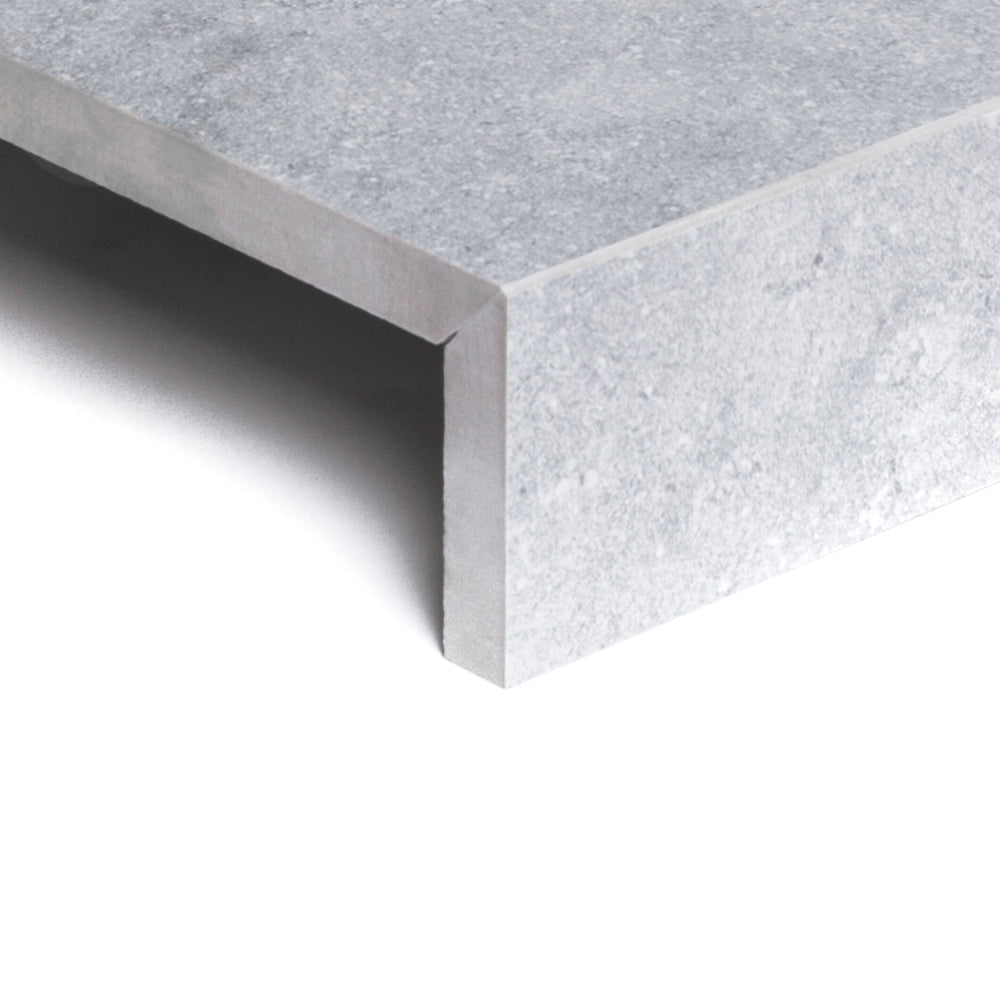 Afboording met afwerking verstekrand en doublure, de hoogte van de doublure kan variëren van 11 tot 25 cm. De tegel wordt eerst op maat versneden en de randen voorzien van verstek, daarna worden de verstekranden op elkaar verkleefd met hiervoor bestemde twee-componentenlijm. De afboordingen zijn beschikbaar in alle series van onze keramische buitentegels 2 cm.