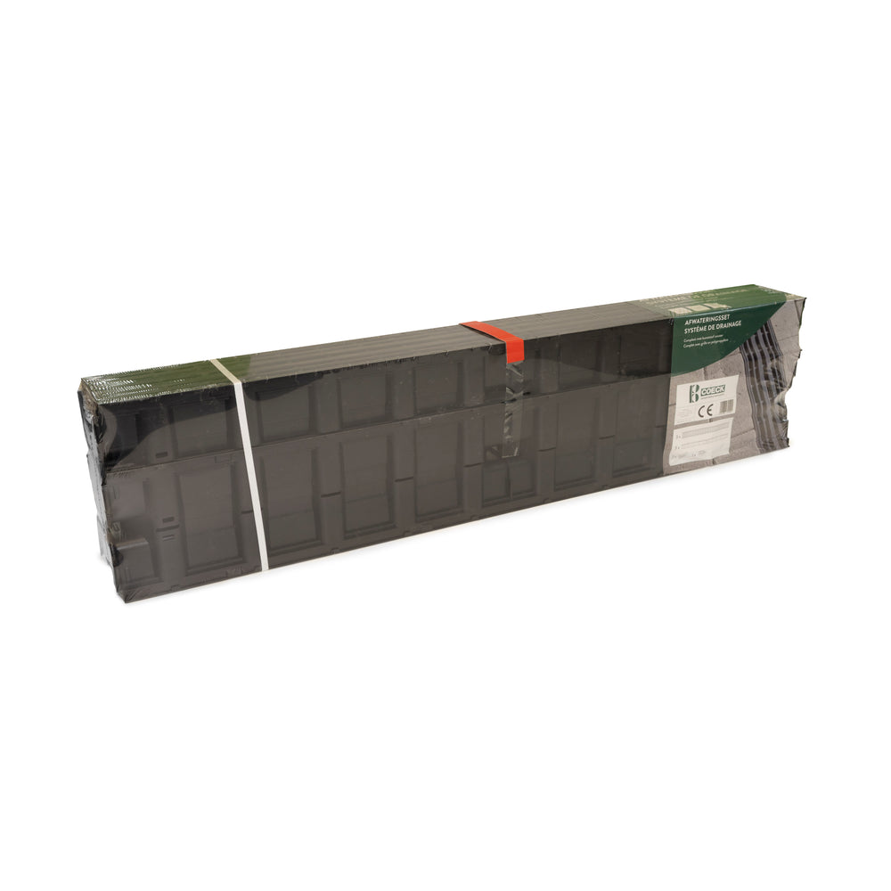 Coeck afwateringsset is een handige verpakking bestaande uit 3 afvoergeulen van 1m in zwart polypropyleen inclusief vlak rooster. Deze set is afgestemd om een afwatering te voorzien achter uw garagedrempel maar kan uiteraard ook gebruikt worden om uw terras aan te leggen. De set bevat ook bijhorende eindplaatjes en een verticale uitloop diam 110mm.